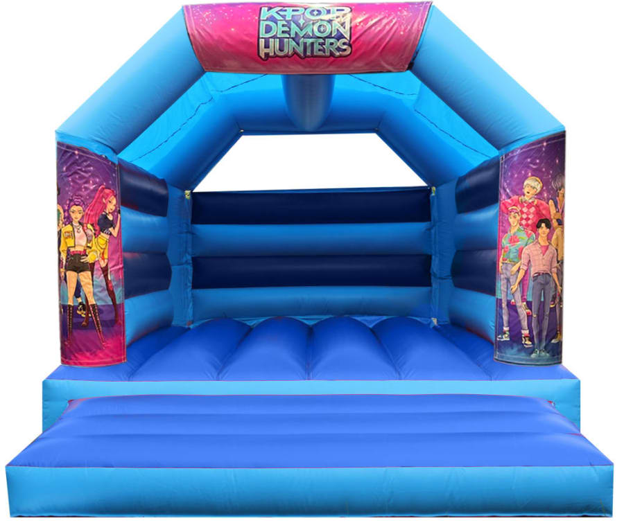 Book reliable event supplier bouncy castle hire 15ft x 12ft K-Pop Demon Hunters Bouncy Castle (BLUE) in Havant, Hayling Island, Chichester, Fareham, Waterlooville for instant party appeal. This eye-catching blue K-Pop Demon Hunters bouncy castle brings bold graphics, roomy bounce area and festival energy to birthdays, school fetes, community events and themed parties. Designed for ages 3–12+, it fits gardens, village halls and public event spaces with easy professional setup.