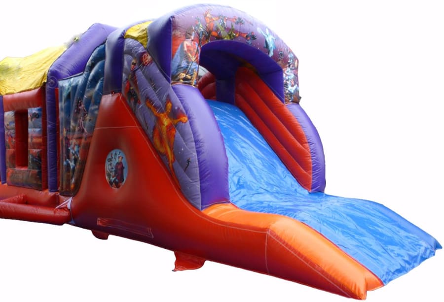 A bright Action hero themed assault course great for large parties with adventurous children or a school fete.